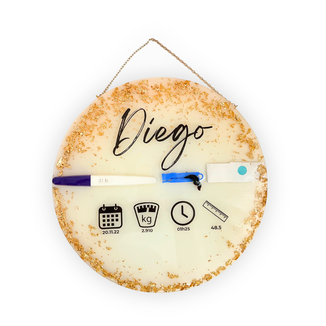 O Quadro de Maternidade Personalizado é uma peça exclusiva que permite eternizar os momentos mais especiais da chegada do seu bebé. Com um design elegante em formato circular, este quadro é ideal para mães que desejam preservar de forma única e sentimental recordações da maternidade.